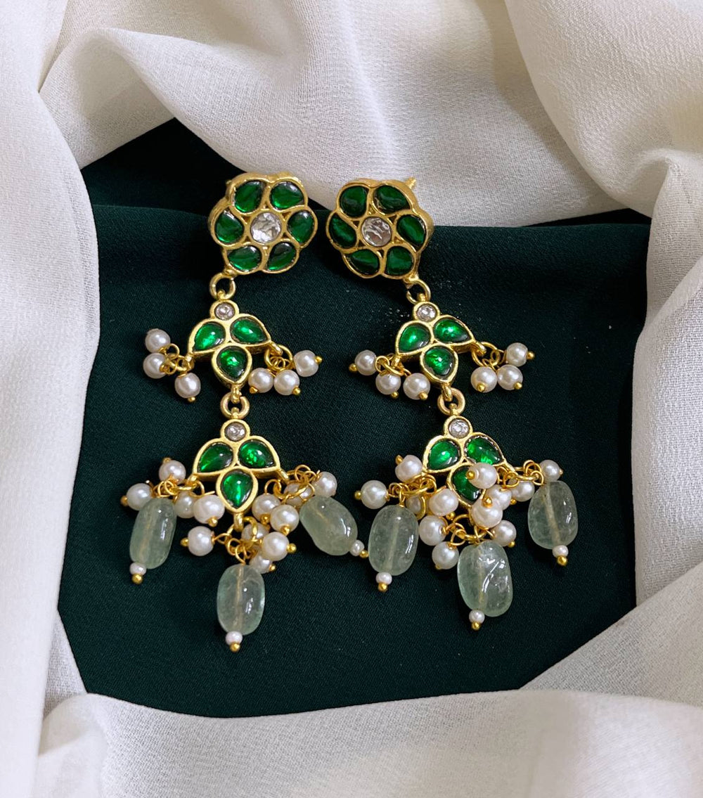 Adorn yourself with timeless elegance through this exquisite Emerald Flower Hanging, masterfully crafted in traditional Kundan work. The lush green emerald stone is delicately set within ornate Kundan detailing, creating a stunning floral design that captures light beautifully. Perfect for special occasions or everyday sophistication, this piece celebrates the rich heritage of Indian jewelry craftsmanship. The intricate handiwork ensures each hanging is a unique treasure, blending classic artistry with contemporary style. Elevate your collection with this enchanting accessory that speaks to refined taste and cultural appreciation.