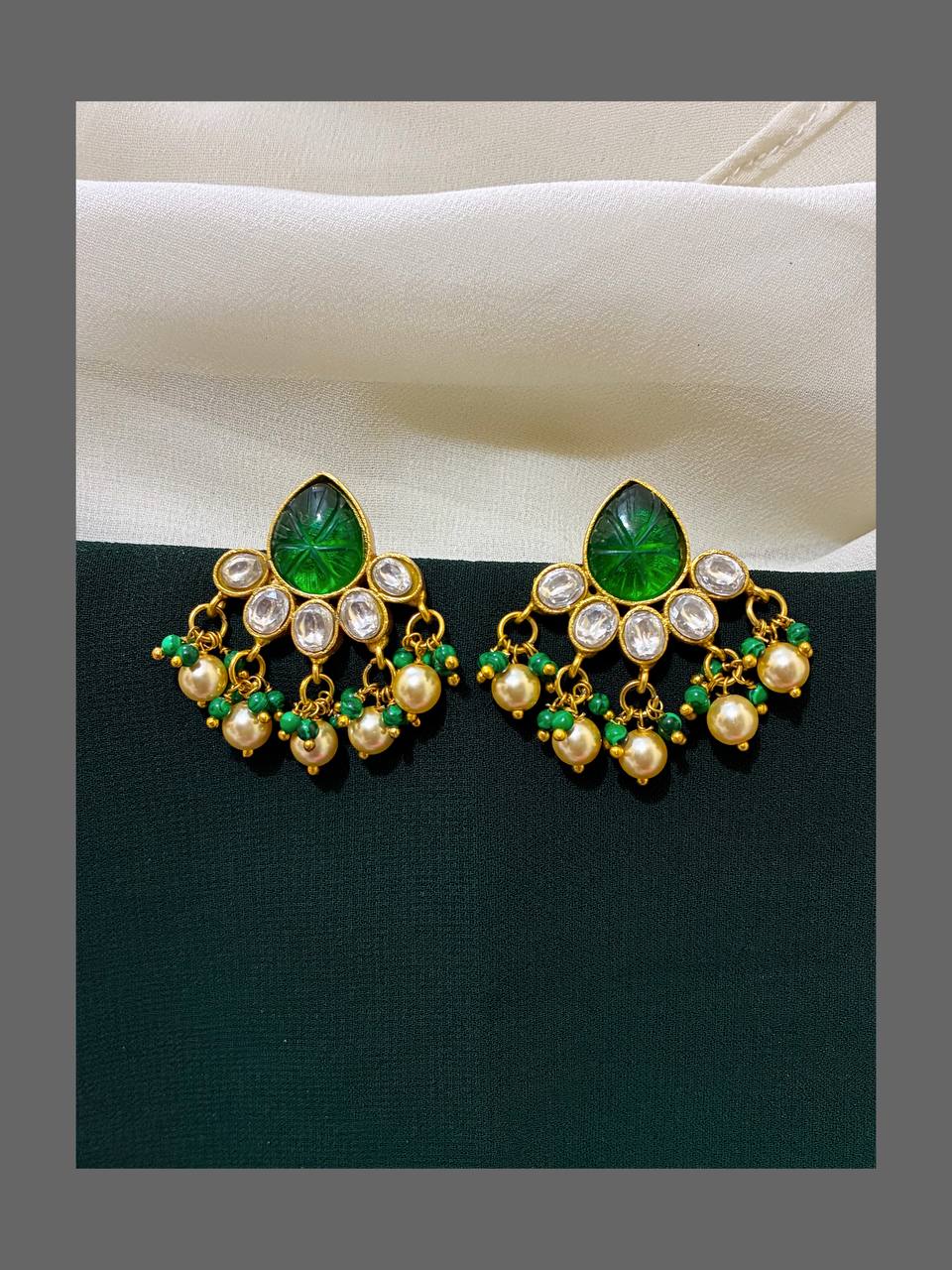 Elevate your ensemble with our Emerald Kundan Ear Studs. These exquisite pieces showcase the timeless artistry of Kundan craftsmanship, complemented by rich emerald hues that add a touch of regal elegance. Meticulously handcrafted for discerning connoisseurs who appreciate refined Indian jewelry traditions.