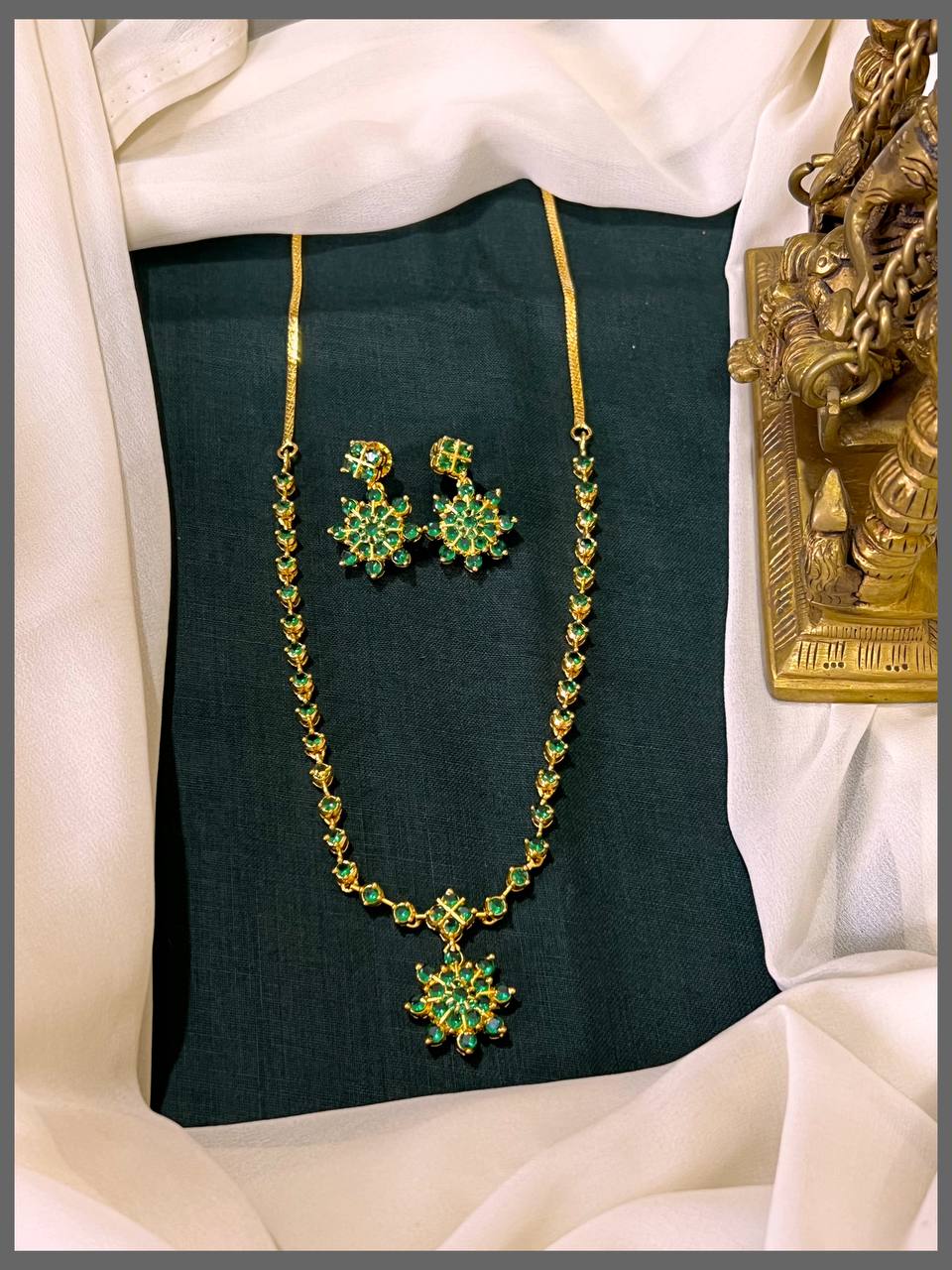 This Emerald Necklace In Nakshi (NN00463) features exquisite craftsmanship that highlights vibrant emerald stones set in intricate nakshi designs. It offers a timeless elegance that complements both traditional and contemporary styles, making it a perfect choice for special occasions or enhancing your everyday look with a touch of sophistication.