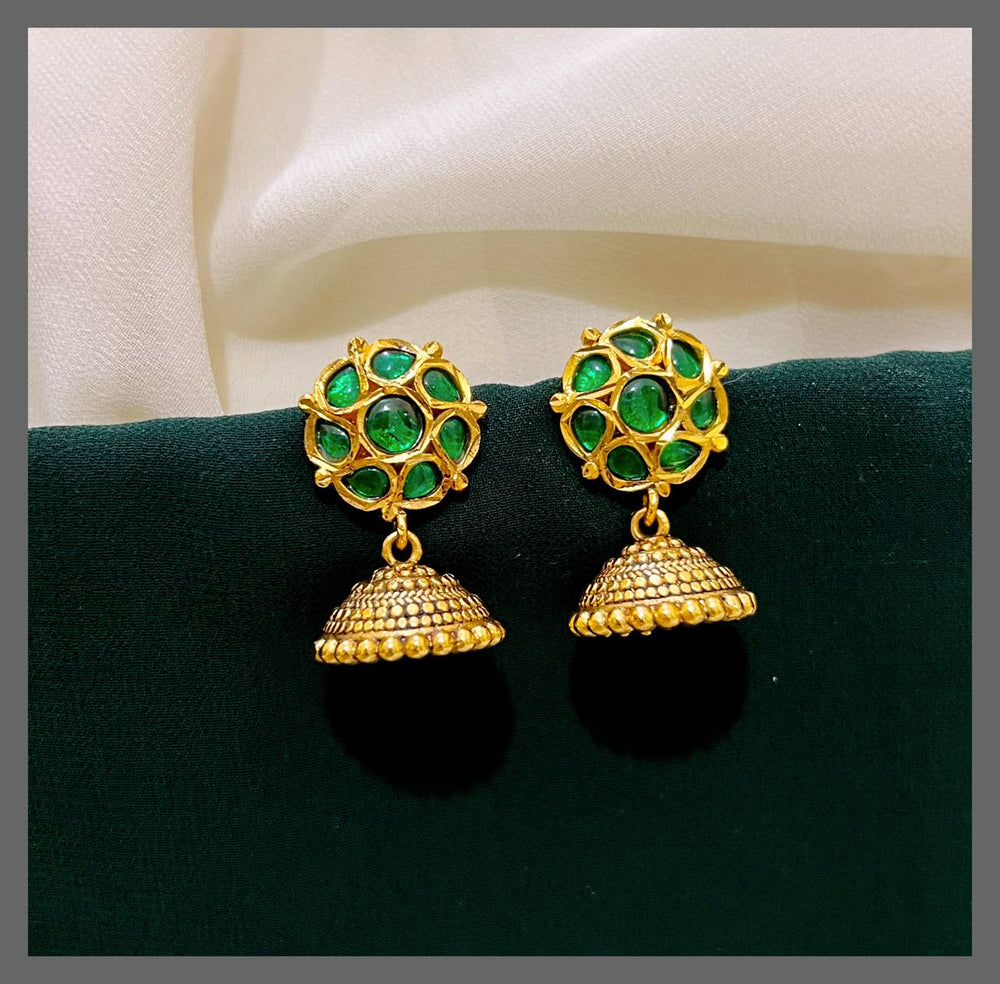 Delicately crafted, the Emerald Small Jhumki in Nakshi design offers a timeless charm to your jewelry collection. Its intricate patterns beautifully highlight the rich green emerald centerpiece, adding a touch of elegance and sophistication to any ensemble. Lightweight and versatile, this jhumki is perfect for daily wear as well as special occasions, making it a meaningful addition that enhances your style effortlessly.