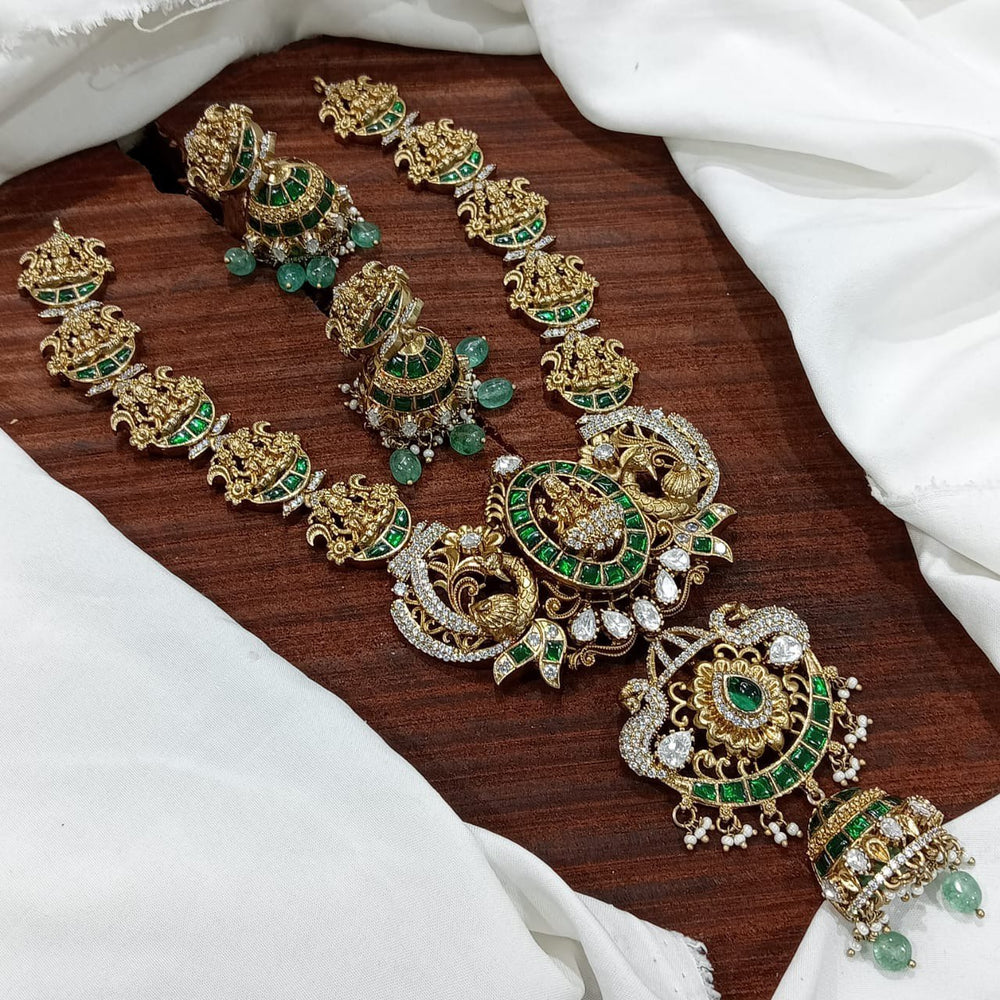 Beautiful Emerald Jadau Haram with Monzonites and pair of Jhumki's