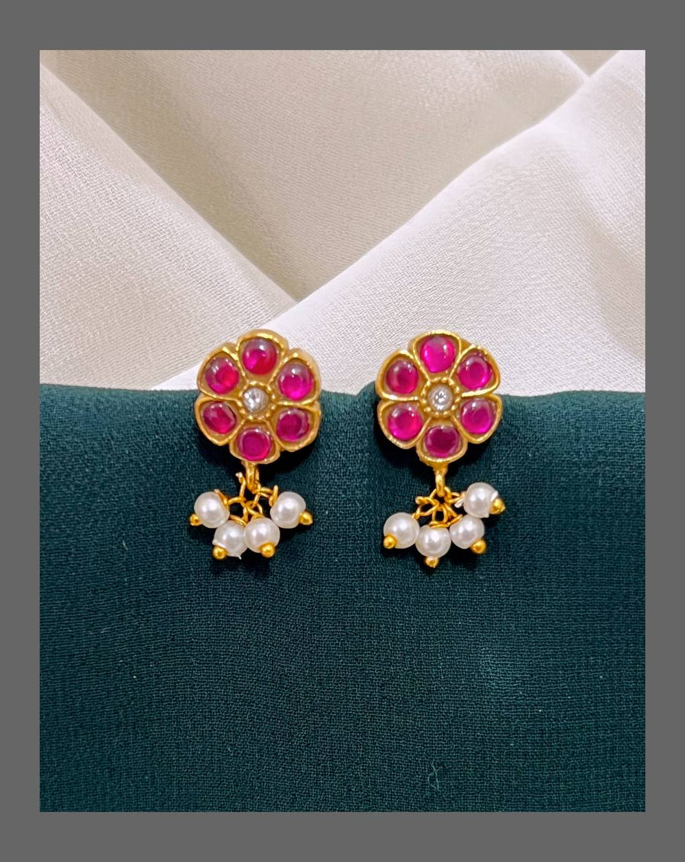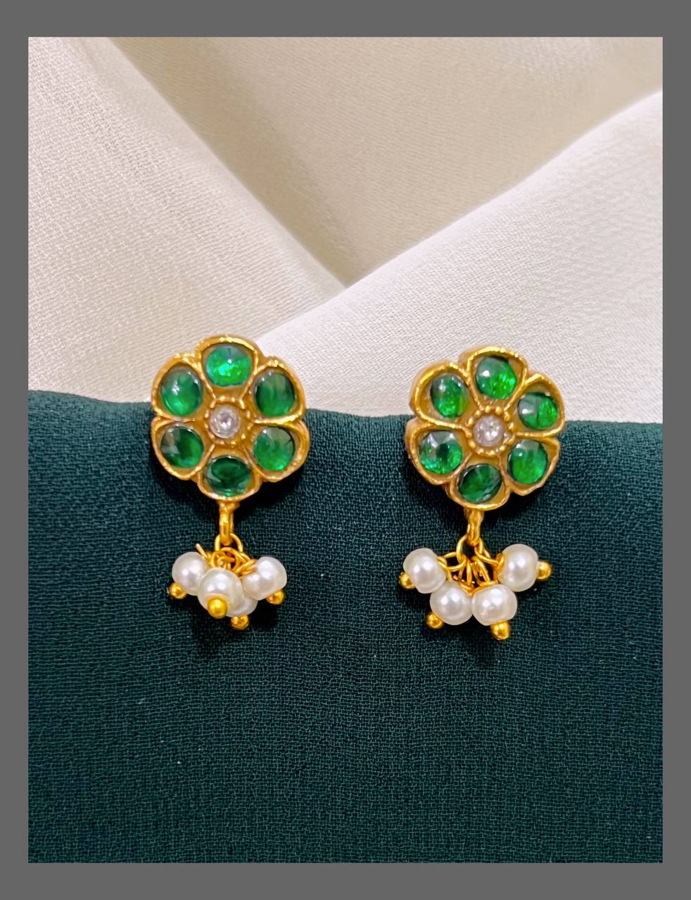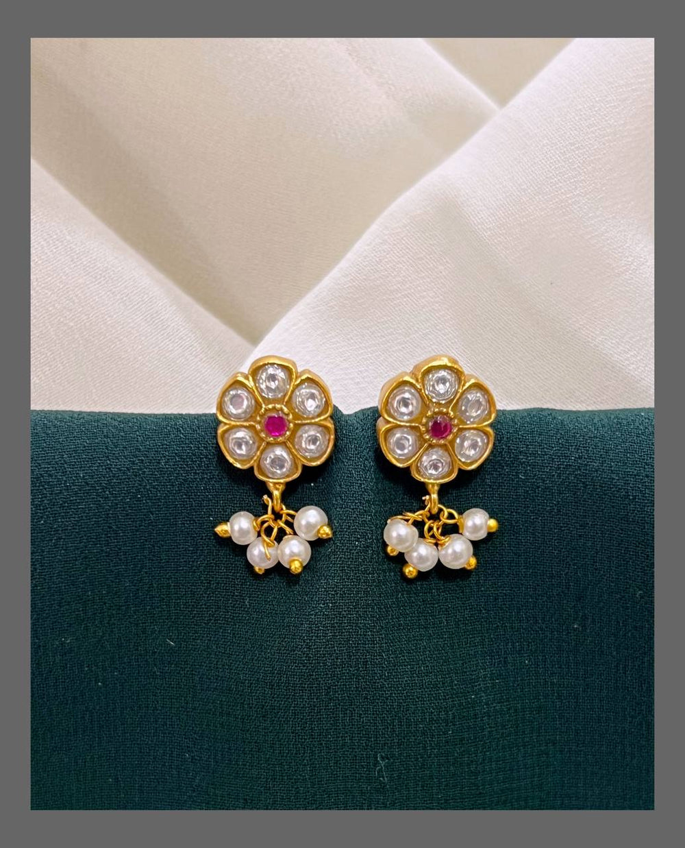 These Flower Earrings in Kundan showcase exquisite craftsmanship with delicate floral designs. Perfect for adding a touch of elegance to any outfit, they blend traditional artistry with timeless beauty. Lightweight and comfortable, they are ideal for both everyday wear and special occasions, enhancing your look with subtle sophistication.