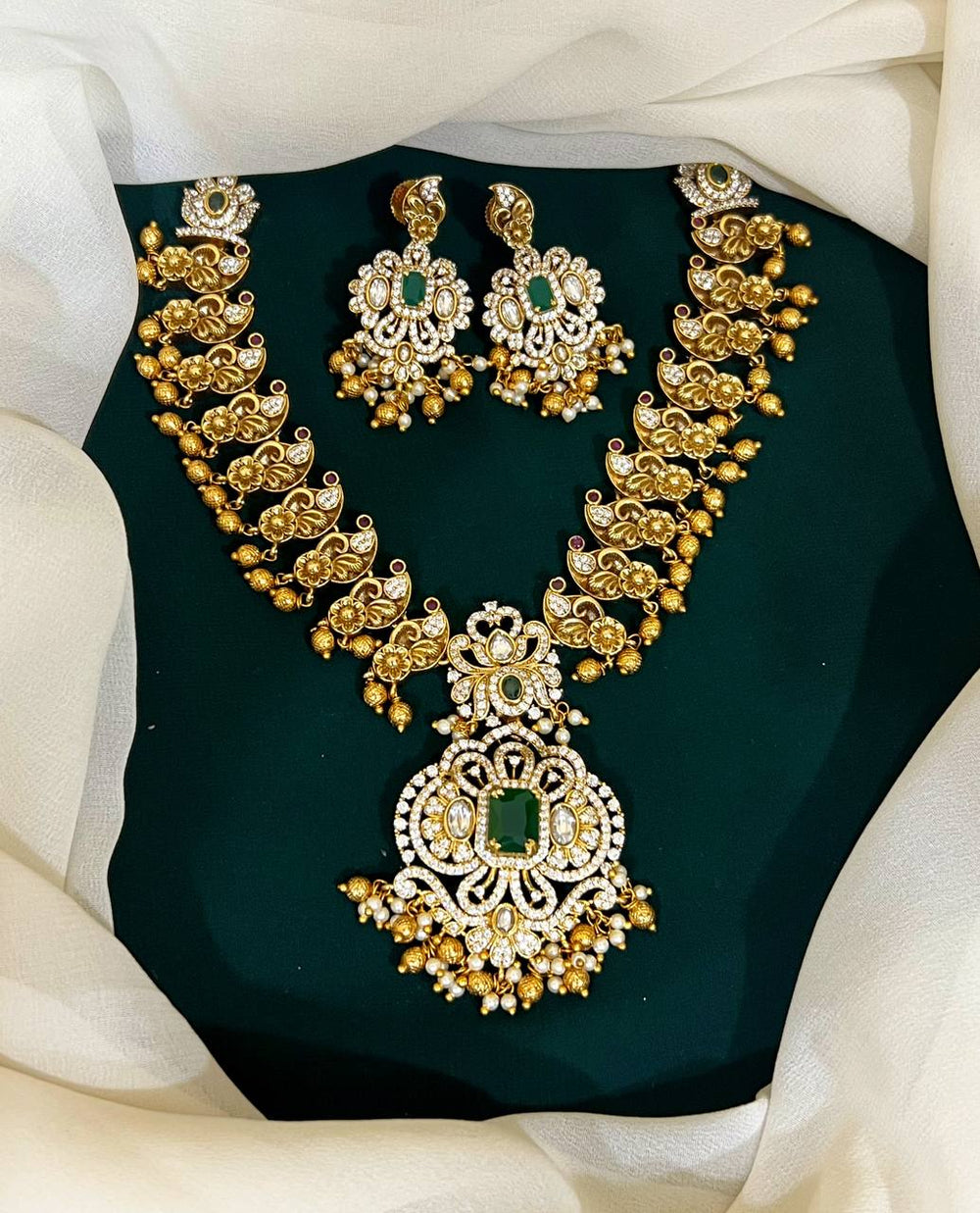 Elevate your accessory collection with this exquisite Beautiful Flower Emerald Naskhi Necklace with Earring adorned with intricate NAKSHI craftsmanship. This stunning piece combines elegance and tradition, making it a perfect addition to any outfit, whether for a special occasion or everyday wear.