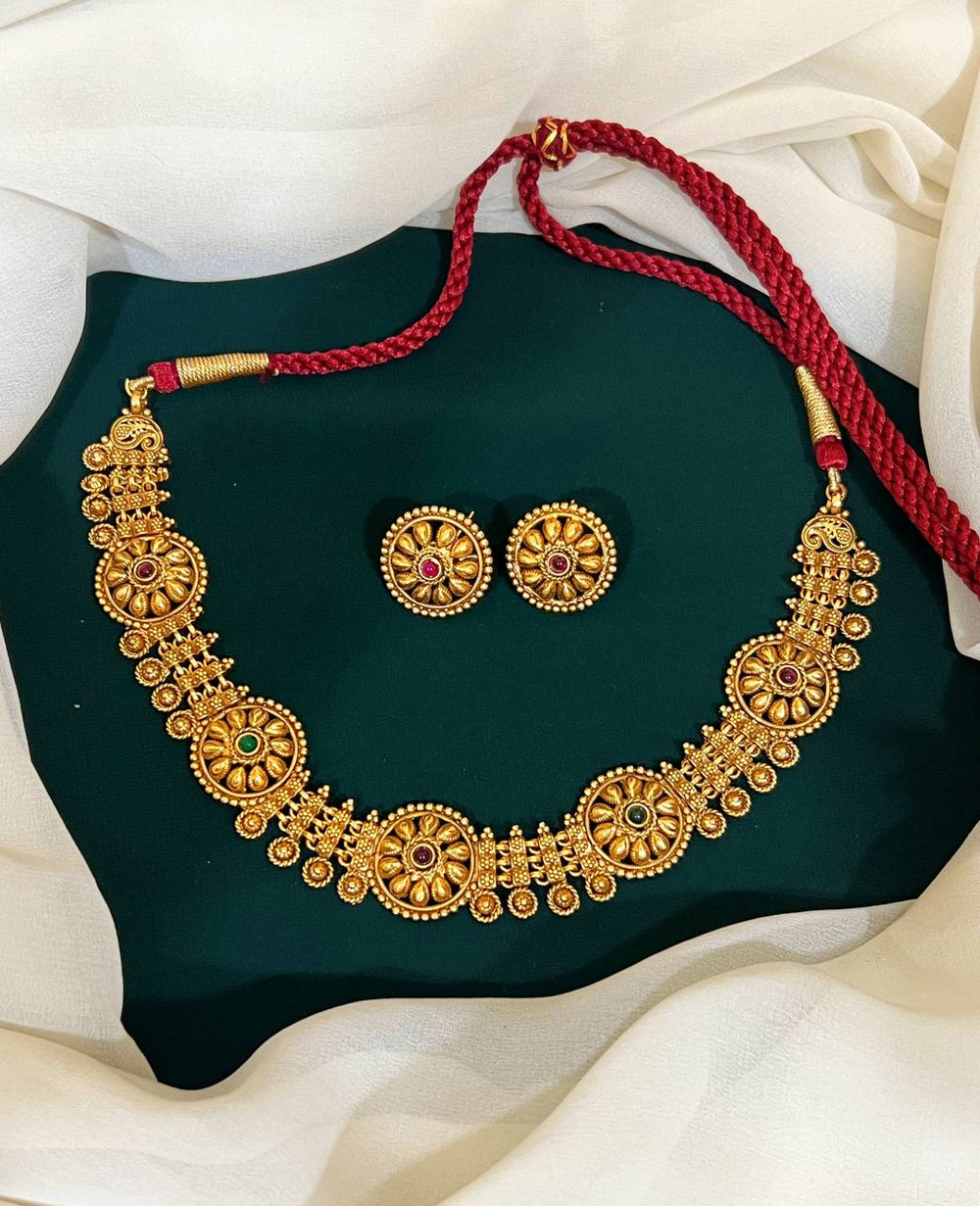 Elevate your accessory collection with this exquisite Flower in Naskhi Necklace with Earring adorned with intricate NAKSHI craftsmanship. This stunning piece combines elegance and tradition, making it a perfect addition to any outfit, whether for a special occasion or everyday wear.