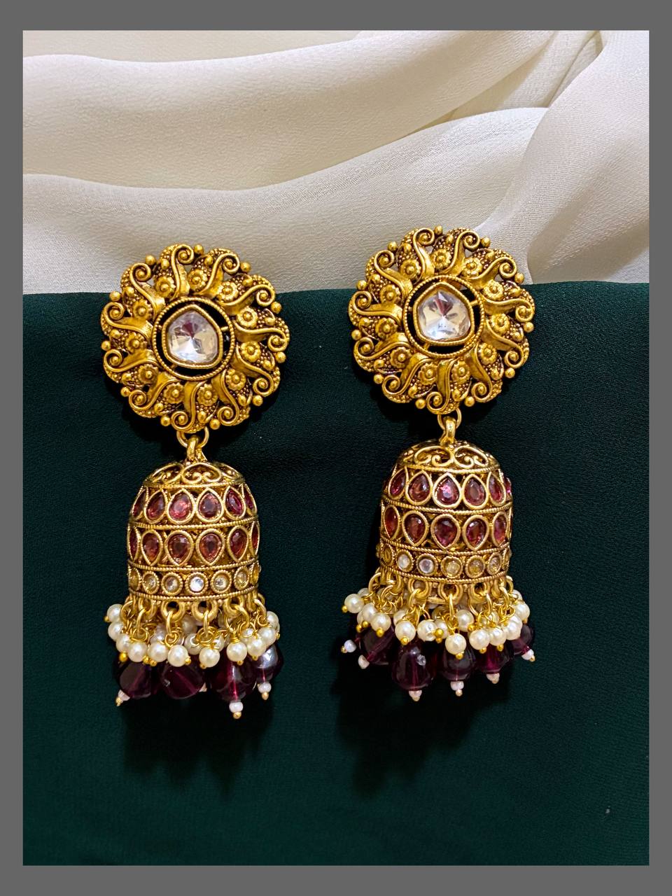 Discover the elegance of our Flower Jhumki in Nakshi collection, featuring designs NE0181, NE0182, NE0183, and NE0184. These intricately crafted earrings showcase delicate floral patterns that add a touch of traditional charm to any outfit. Perfect for special occasions or daily wear, they offer a graceful blend of style and cultural artistry. Embrace timeless beauty with these stunning jhumkis that complement your unique personality.