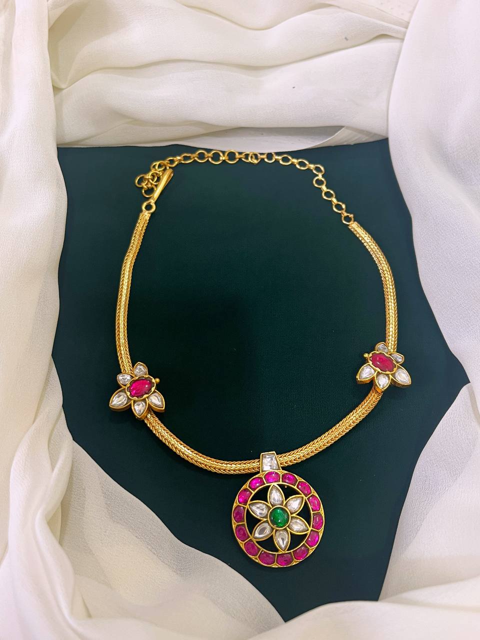 Elevate your accessory collection with this exquisite Flower pendent in Jadau Necklace adorned with intricate JADAV KUNDAN workmanship. This stunning piece combines elegance and tradition, making it a perfect addition to any outfit, whether for a special occasion or everyday wear.