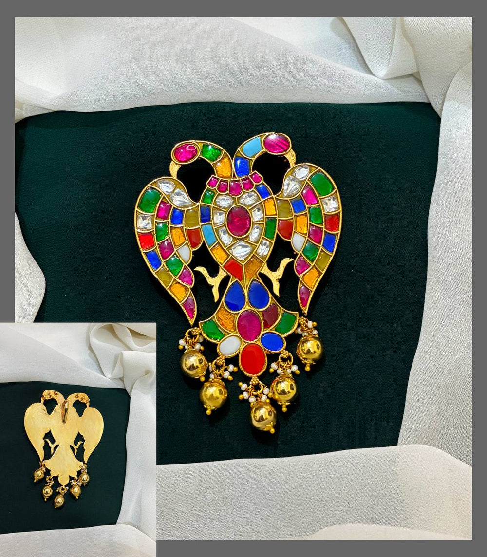 Discover the Gandaberunda Pendant in Jadau Stone, a stunning piece that blends traditional artistry with timeless elegance. Crafted with intricate Jadau stonework, this pendant adds a unique charm to any outfit. Its detailed design symbolizes strength and protection, making it a meaningful accessory for daily wear or special occasions. Embrace the beauty and cultural heritage this pendant brings to your jewelry collection.