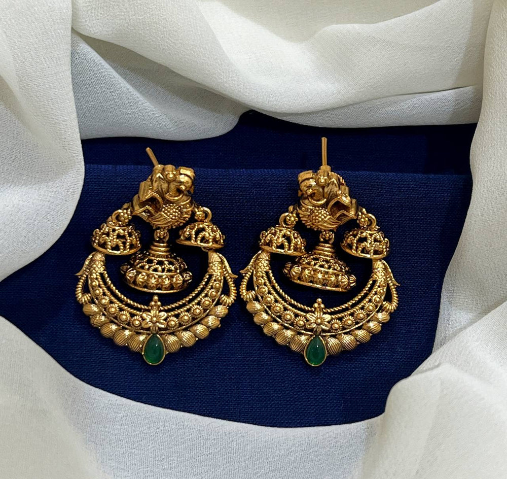 Beautiful Gold with Emerald Peacock with small Jimikki Nakshi Earring