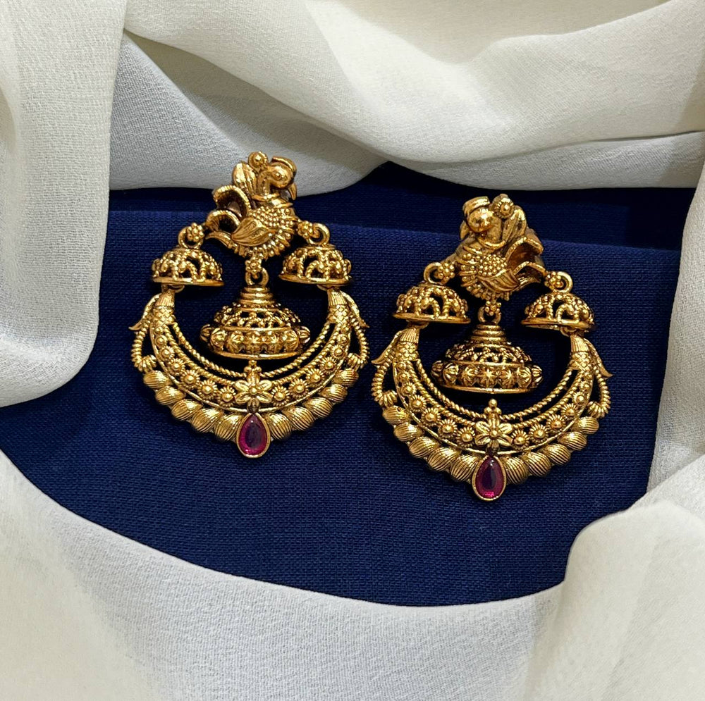 Beautiful Gold with Ruby Peacock with small Jimikki Nakshi Earring