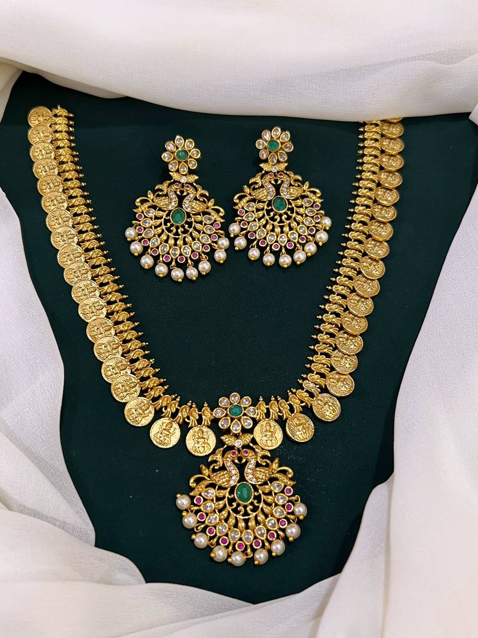The Grand Kaasu Necklace With Pendant - NN00140 is the perfect accessory for any wedding occasion. Its traditional design adds a touch of elegance to any outfit, making it a must-have for the wedding season. Crafted with the highest quality materials, this necklace is sure to make a statement and elevate your style. Add a touch of tradition to your wardrobe with this stunning necklace.