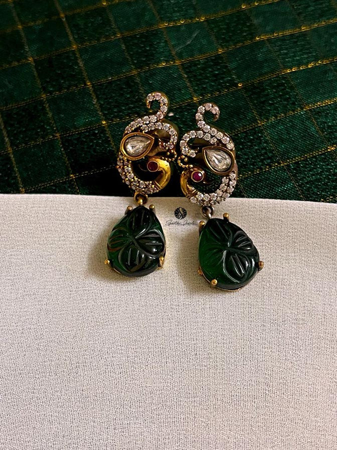 Green American Diamond studded Earrings