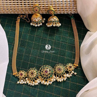 Green Color Choker with Earrings