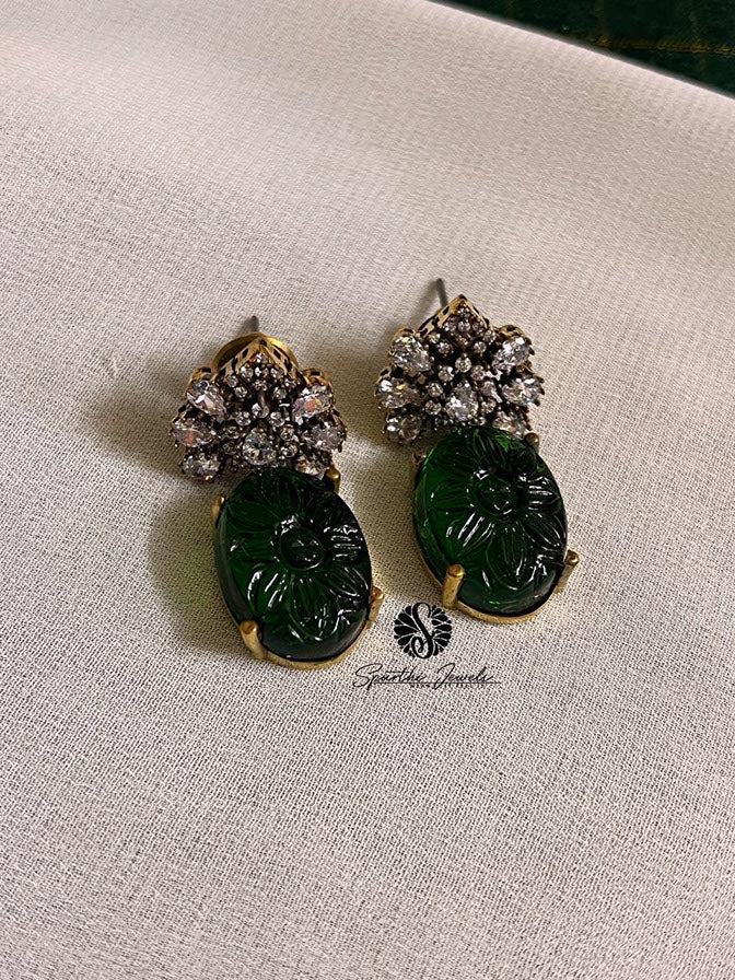 Green American Diamond studded Earrings Features: Color: Green Style: Tops Material: American Diamond Earrings Backside: Push Back Experience: Lightweight and comfortable to wear Usage: Everyday Celebration use