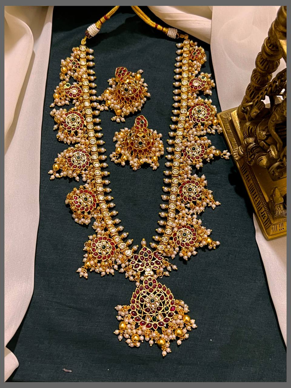 Elevate your traditional wardrobe with this exquisite Guttipusalu Haram in Nakshi design. Crafted with meticulous attention to detail, this piece showcases the timeless beauty of intricate beadwork combined with classic gold-toned elements. The Nakshi technique adds depth and dimension, creating a stunning focal point for any occasion. Perfect for festivals, celebrations, or everyday elegance, this haram brings.
