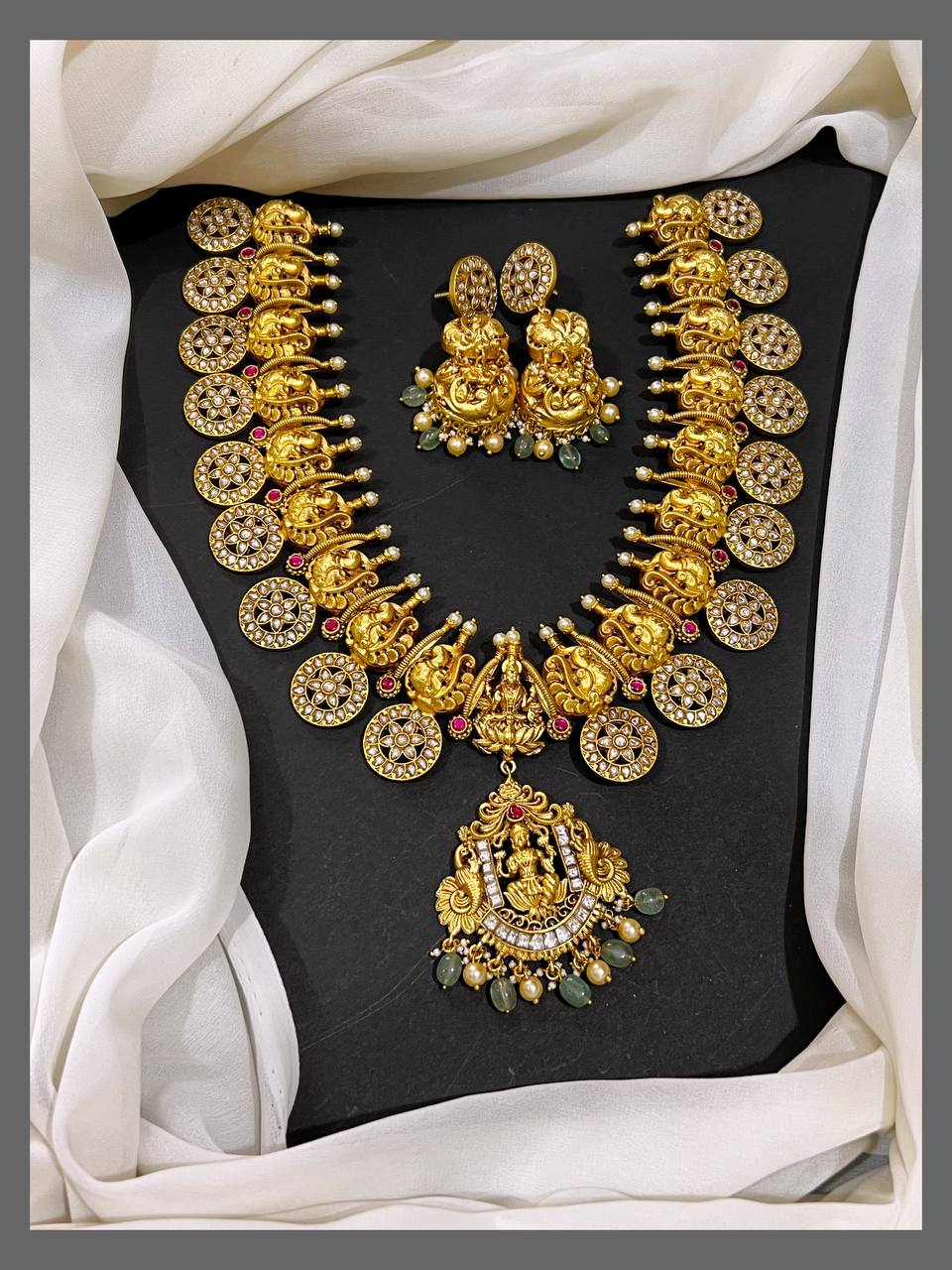 Embrace timeless beauty with the Jadau Bottu Haram and screw back jhumkis, designed to offer both elegance and comfort. The secure screw back ensures your earrings stay in place all day, while the intricate jadau work adds a graceful charm to any outfit. Perfect for special moments when you want to feel confident and radiant.