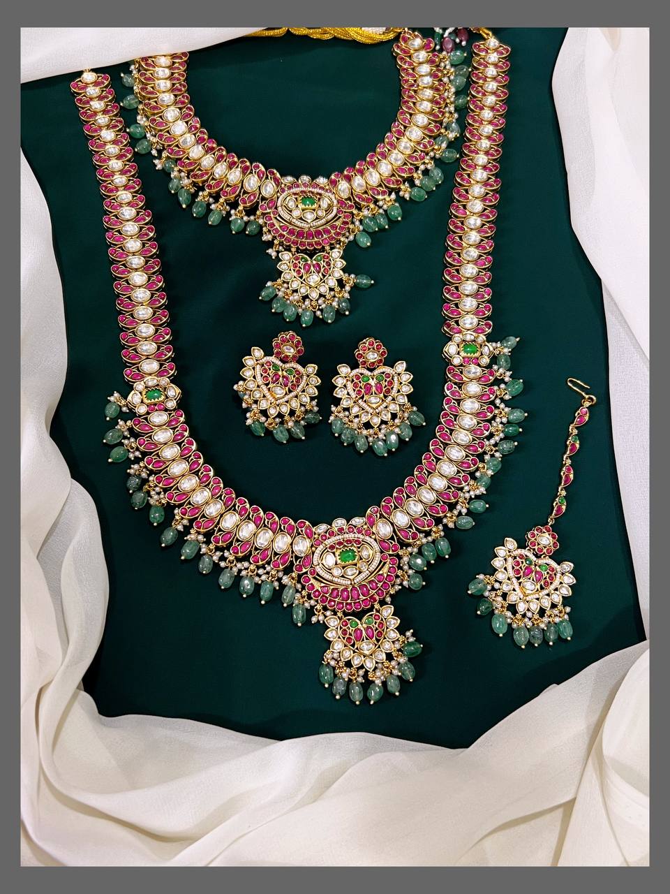 Elevate your bridal look with the Jadau Bridal Combo Set - BC005, designed to add timeless elegance to your special day. This exquisite set features intricate craftsmanship that highlights traditional artistry, ensuring you shine with grace and confidence. Perfectly suited for weddings, it complements your bridal attire beautifully, making every moment memorable. Embrace the charm and sophistication this set brings to your celebration.
