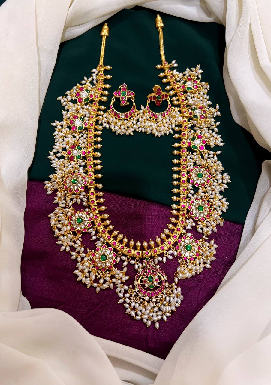 Beautiful Jadau Kundan Rice pearls Long haram with back chain