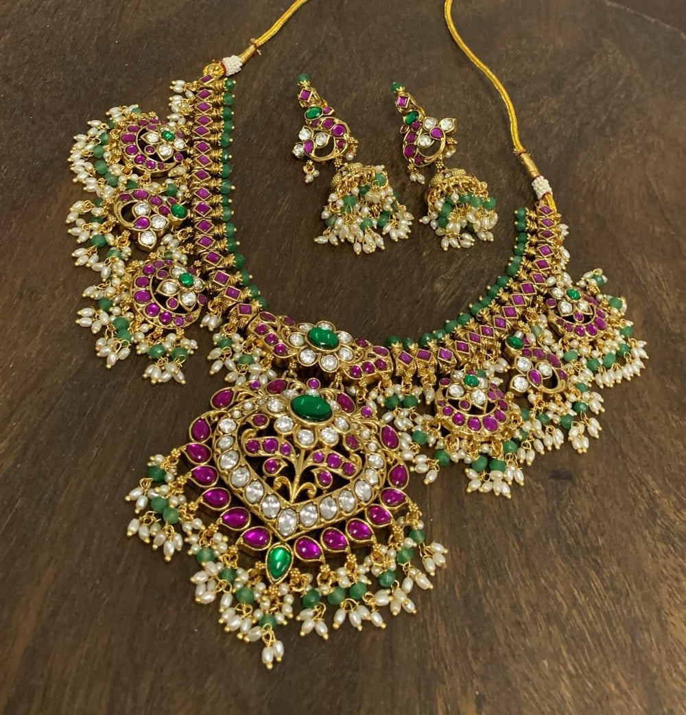 The Jadau Guttipusalu Necklace - KN00462 beautifully showcases traditional craftsmanship with intricate guttipusalu detailing. This necklace enhances any look with its elegant design, making it perfect for special occasions or daily wear. Its timeless appeal and careful artistry offer you a graceful accessory that complements your style effortlessly.