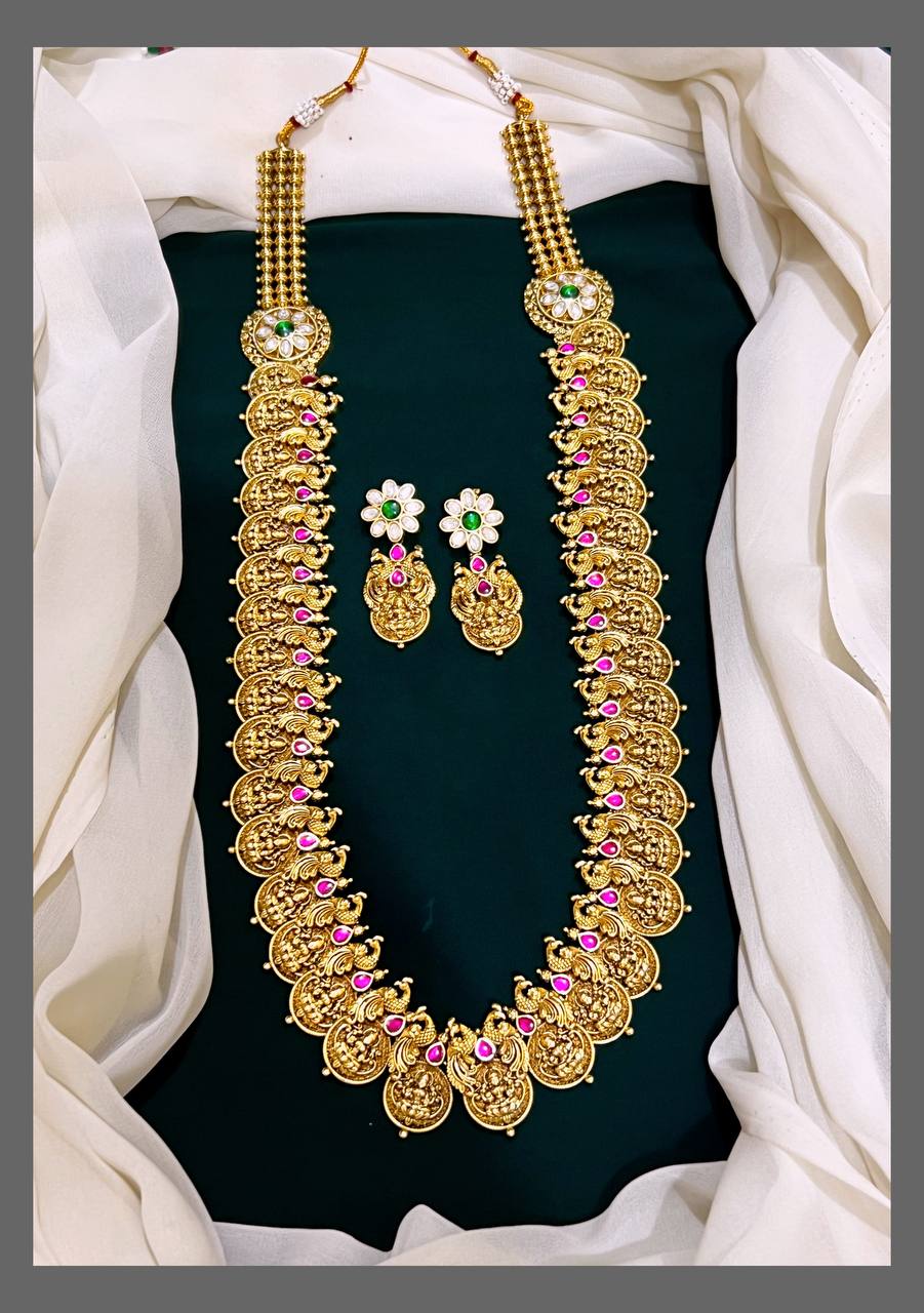Elevate your traditional collection with the Jadau Kaasu Long Haram - KH00241. This exquisite piece showcases intricate craftsmanship, blending classic design with timeless elegance. Perfect for special occasions, it adds a graceful touch to any outfit while reflecting rich cultural heritage. Comfortable to wear and designed to complement a variety of styles, this long haram is a valuable addition to your jewelry wardrobe.