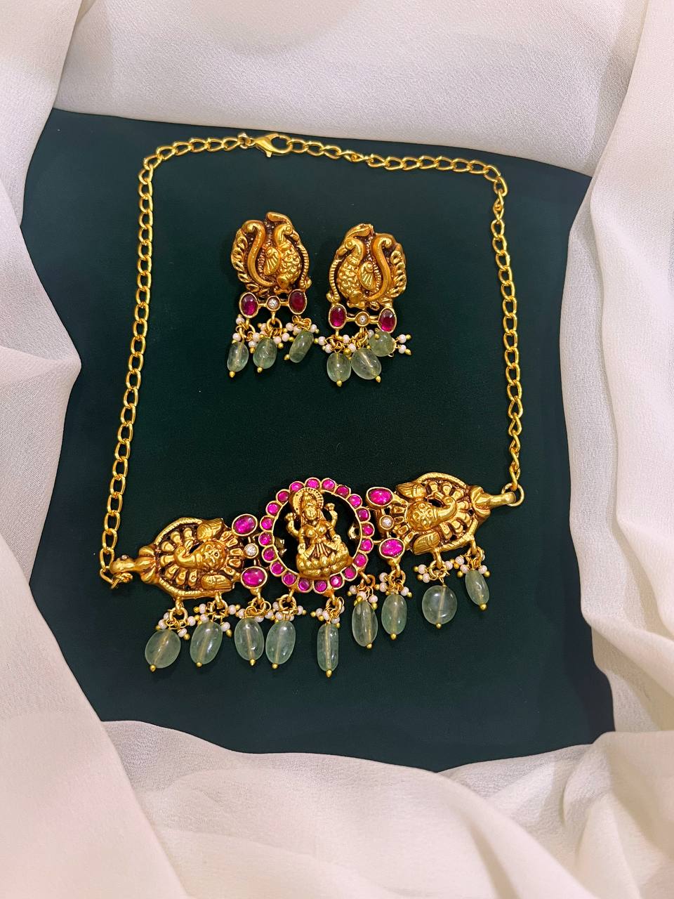Elevate your accessory collection with this exquisite Jadau Kundan in Lord Lakshmi Necklace with Earrings adorned with intricate JADAV KUNDAN workmanship. This stunning piece combines elegance and tradition, making it a perfect addition to any outfit, whether for a special occasion or everyday wear.