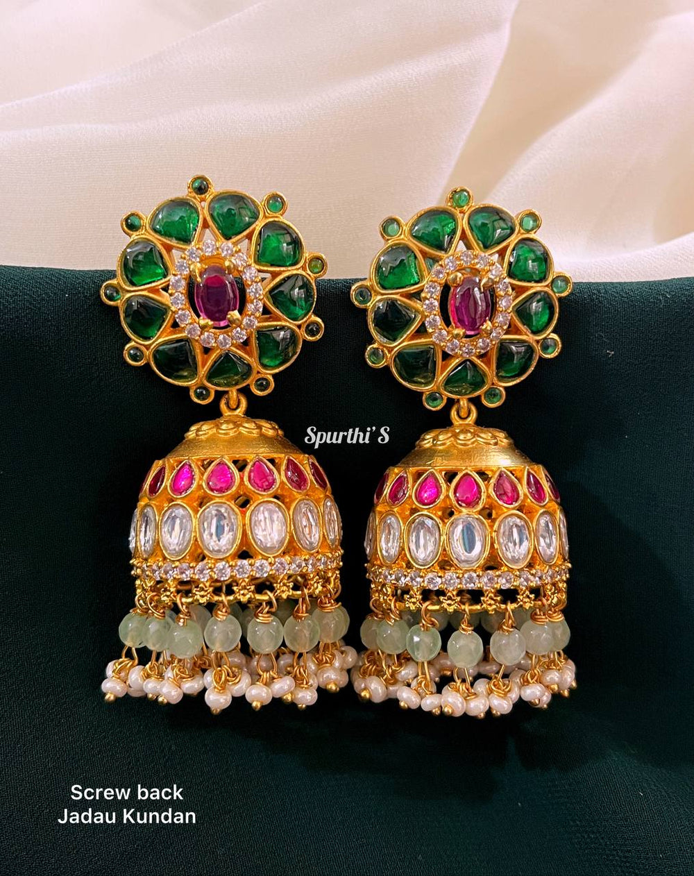 Emerald stud Jadau Kundan Screw Back Jhumkis