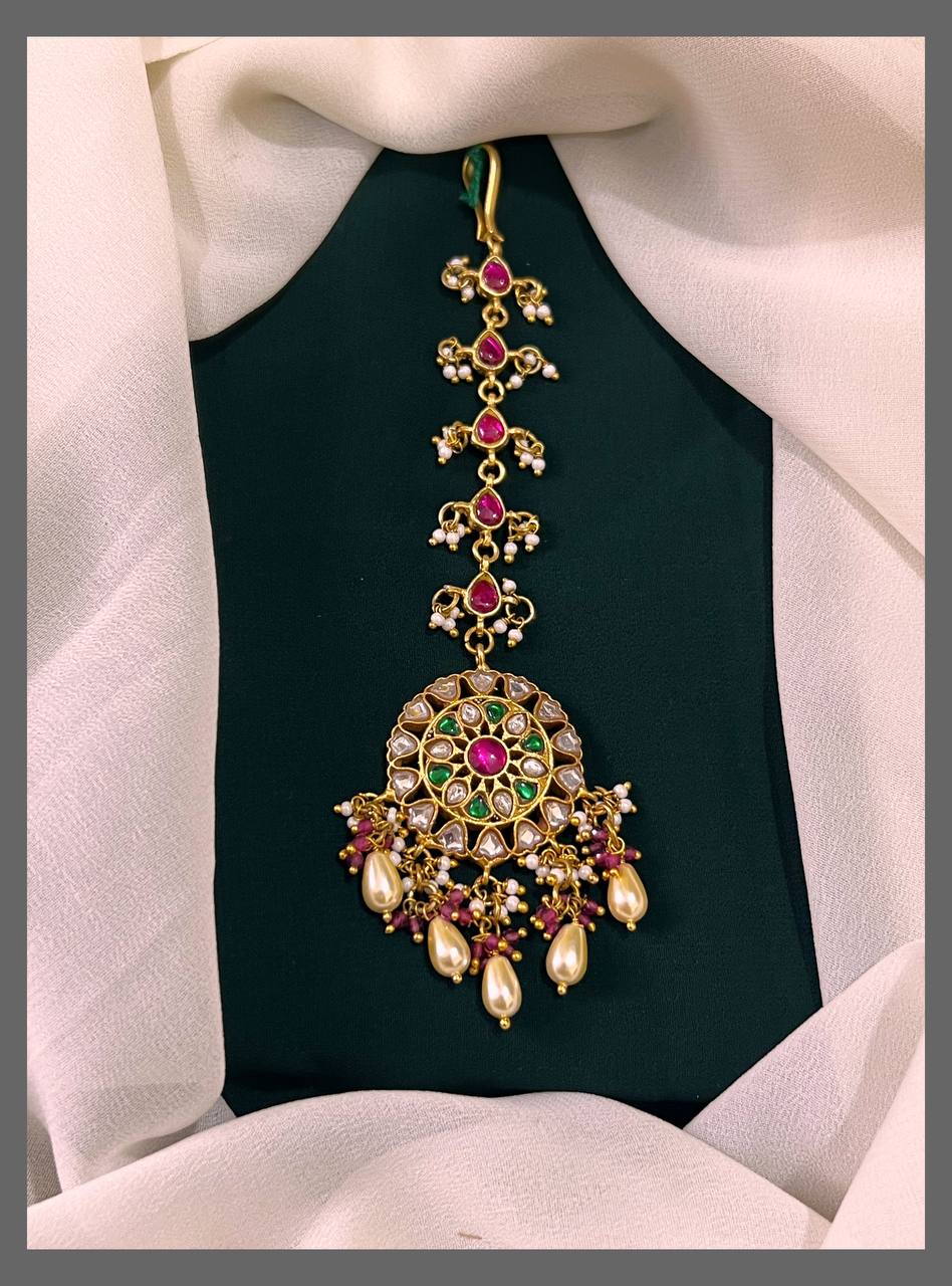Elevate your traditional look with the Jadau Maang Tikka - HA0067. Expertly crafted with intricate detailing, this maang tikka adds a graceful touch to any festive or wedding ensemble. Designed for comfort and elegance, it enhances your hairstyle while reflecting timeless charm. Perfect for making cherished moments even more special.