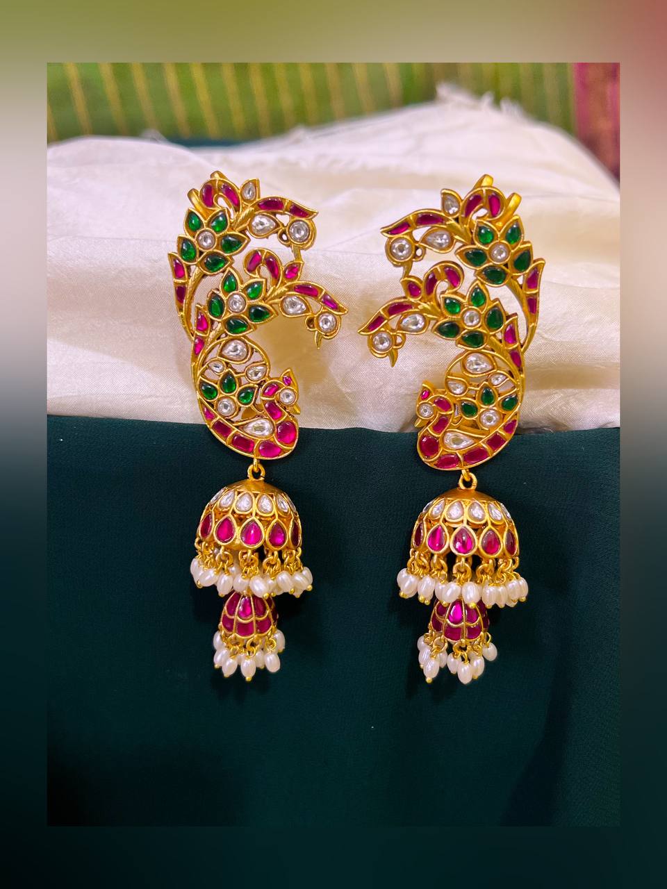 This elegant Jadau Peacock Earcuff with Double Jhumki - KE00116 (PRE BOOK 10 Days) is a must-have for any jewelry lover. Handcrafted with intricate detailing and a stunning design, this earcuff is sure to make a statement. Pre-book now and add this unique piece to your collection.