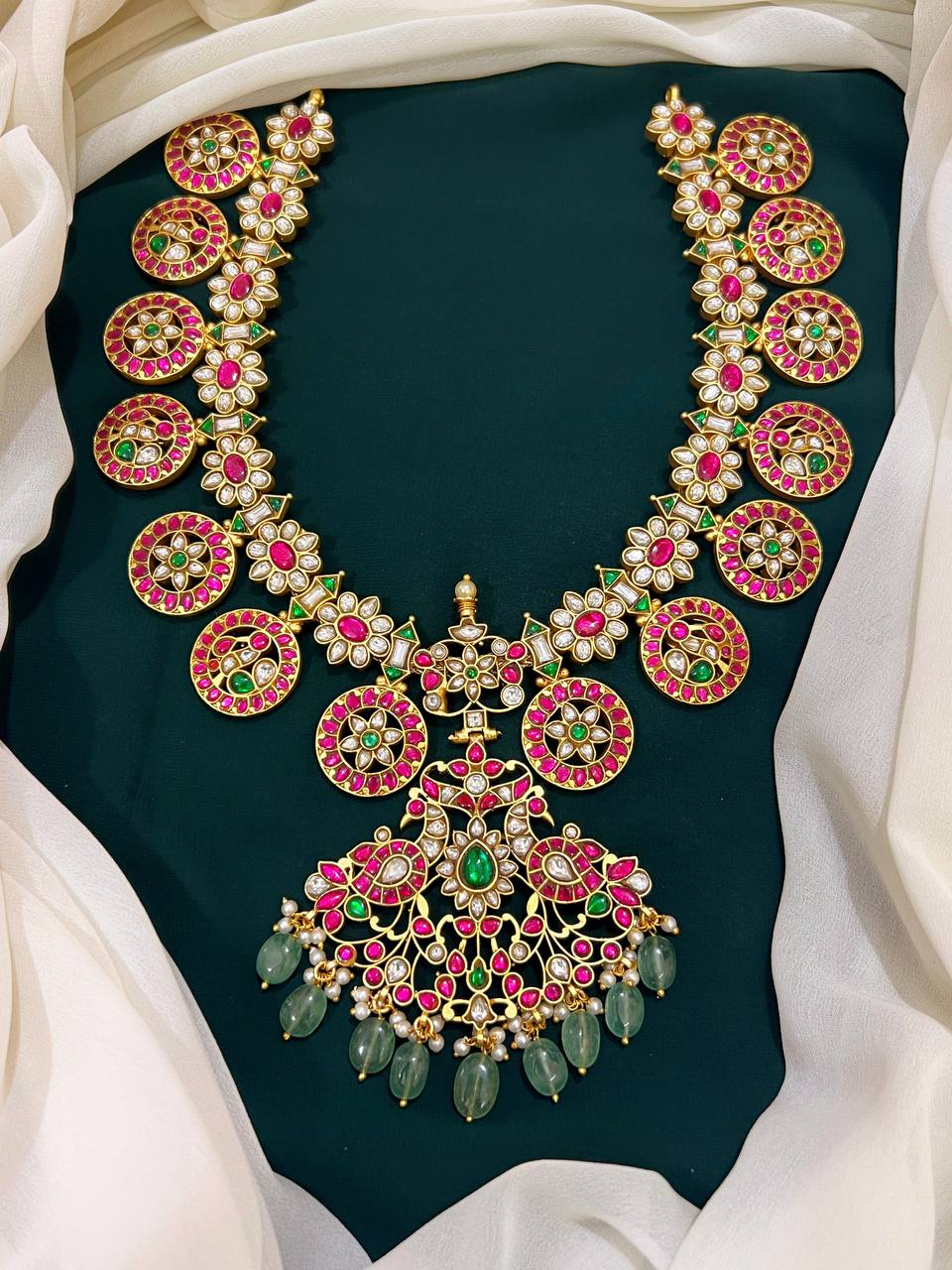 Elevate your accessory collection with this exquisite Jadav Kundan Bottumala Haram with Pendent adorned with intricate JADAV KUNDAN workmanship. This stunning piece combines elegance and tradition, making it a perfect addition to any outfit, whether for a special occasion or everyday wear.
