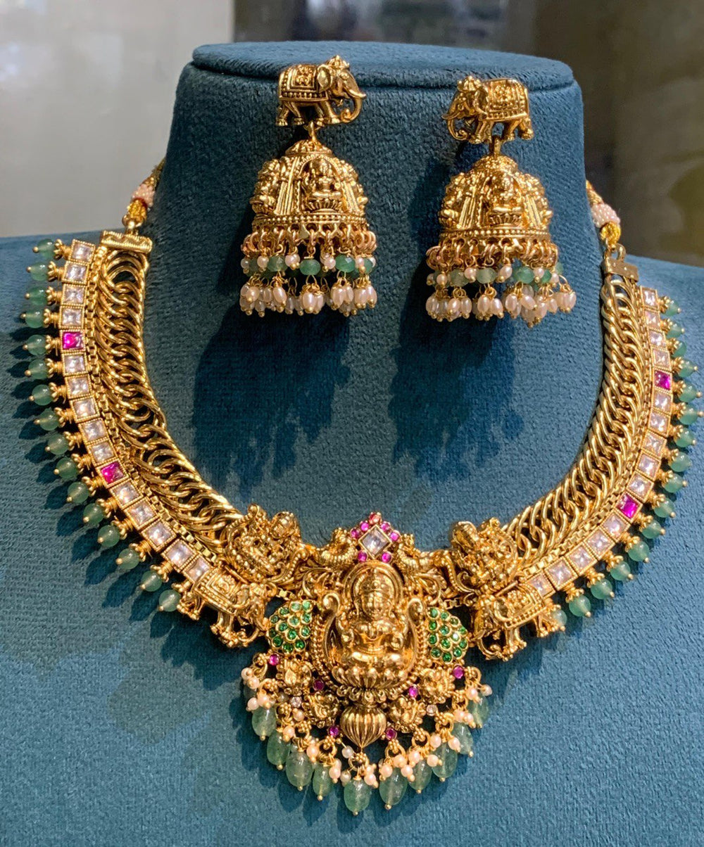 Beautiful Jadau Lakshmi Necklace with pair of jhumkis
