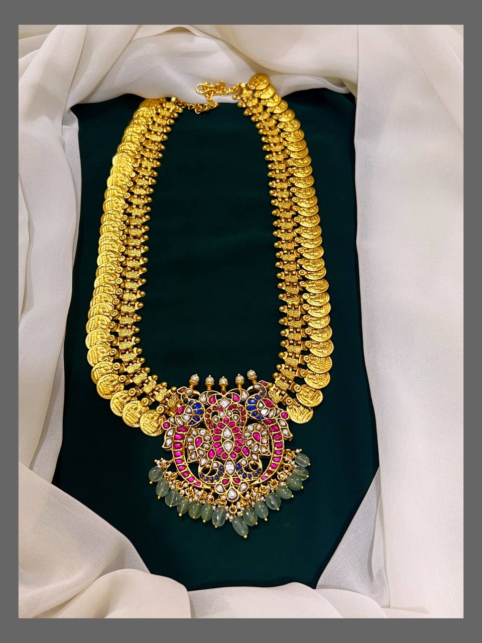 Enhance your ethnic attire with our Kashu Mala with Blue Peacock Pendant in Kundan - KH00172. Handcrafted with precision, this stunning piece features intricate detailing and a bold blue peacock design for a touch of elegance. Elevate your style and make a statement with this exquisite necklace.
