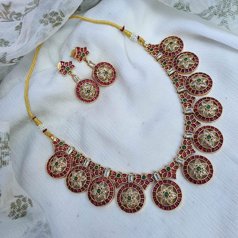 Beautiful Kempu Bottumala in one gram gold with pair of earrings.