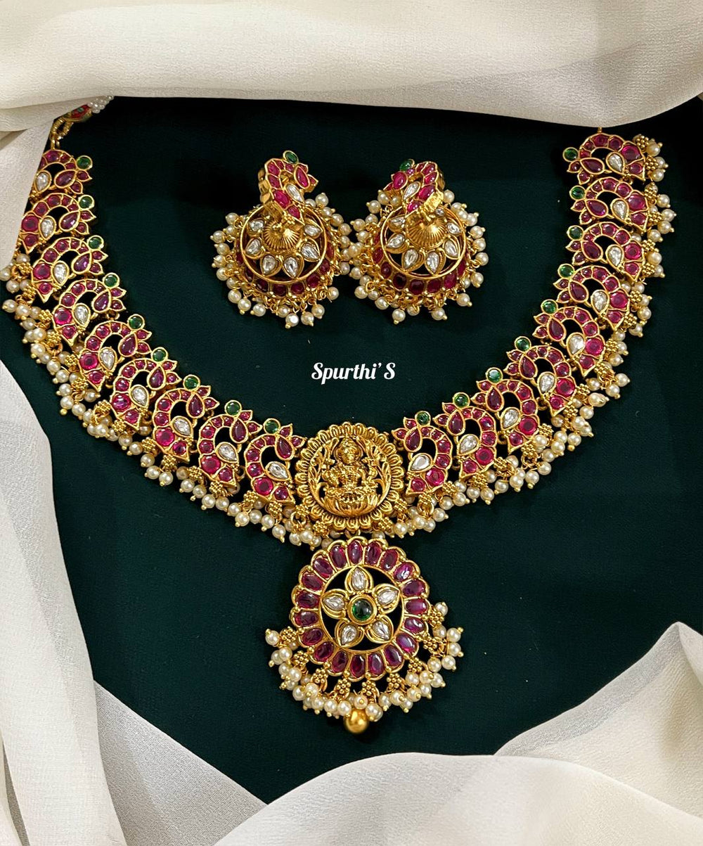 Beautiful Kempu Necklace earring with lakshmi pendant and pair of jhumki