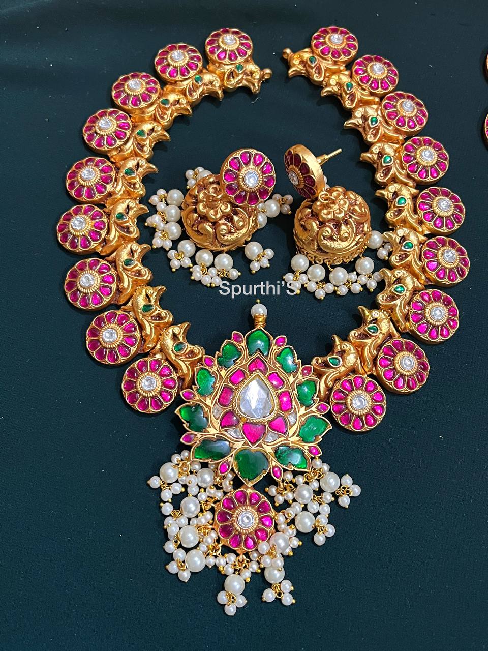 Beautiful Kundan Bottumala haram with lotus pendants.