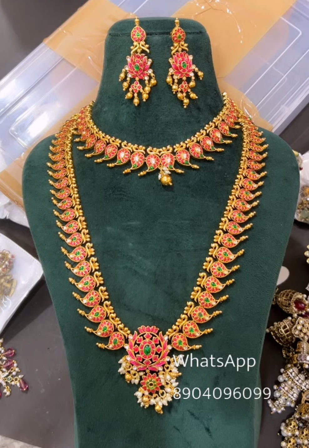 Beautiful jadau Kundan mango bridal combo set with 2 pair earrings.