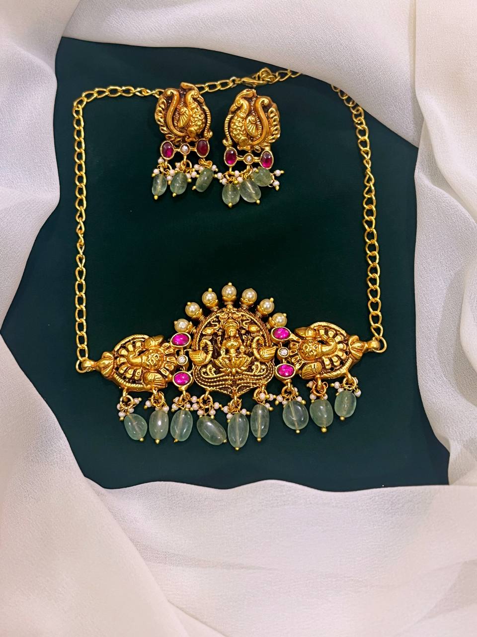 Elevate your accessory collection with this exquisite Jadau Kundan in Lakshmi Necklace with Earrings adorned with intricate JADAV KUNDAN workmanship. This stunning piece combines elegance and tradition, making it a perfect addition to any outfit, whether for a special occasion or everyday wear.