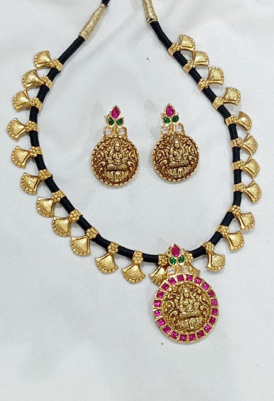 Black Dori with Lakshmi Jadau pendant and earrings.