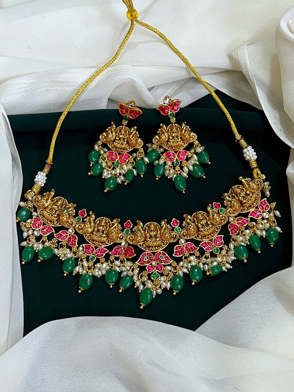 Elevate your accessory collection with this exquisite Lakshmi Choker with Peacock in Jadau Kundan with Earring adorned with intricate JADAV KUNDAN workmanship. This stunning piece combines elegance and tradition, making it a perfect addition to any outfit, whether for a special occasion or everyday wear.