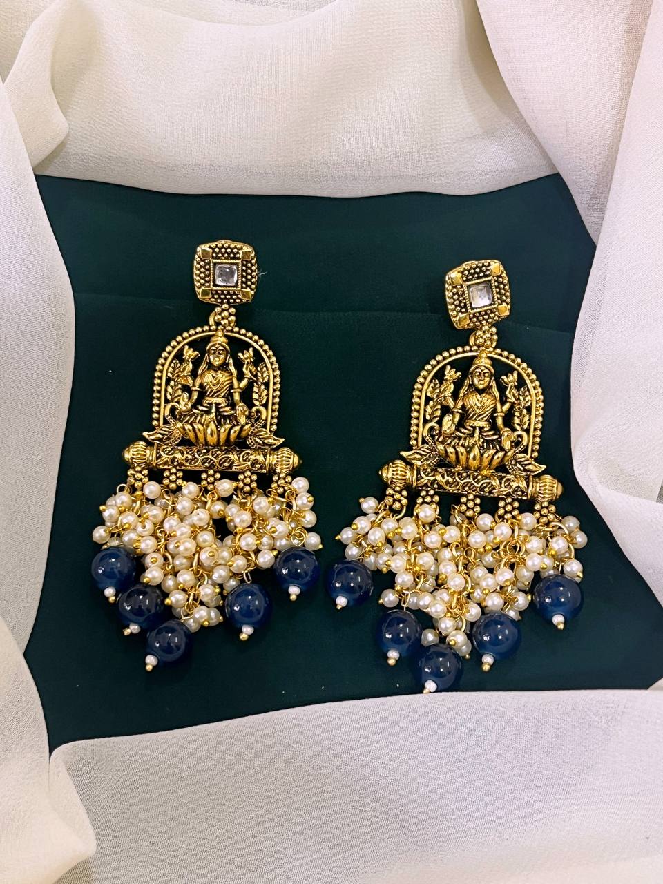Beautiful Lakshmi in Blue Nakshi Earrings
