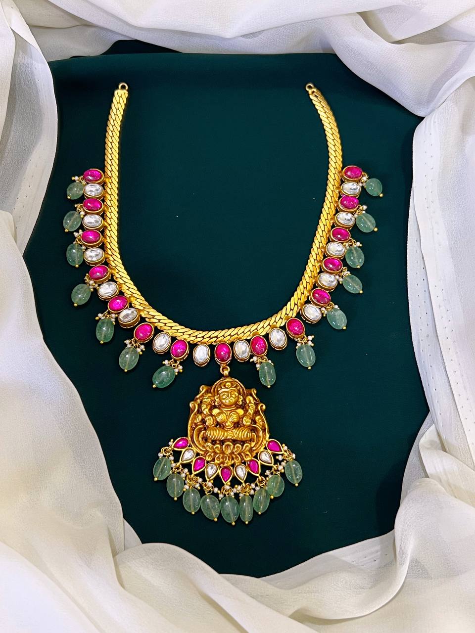 Elevate your accessory collection with this exquisite Lakshmi Necklace in Jadau Kundan with Pendent adorned with intricate JADAV KUNDAN workmanship. This stunning piece combines elegance and tradition, making it a perfect addition to any outfit, whether for a special occasion or everyday wear.