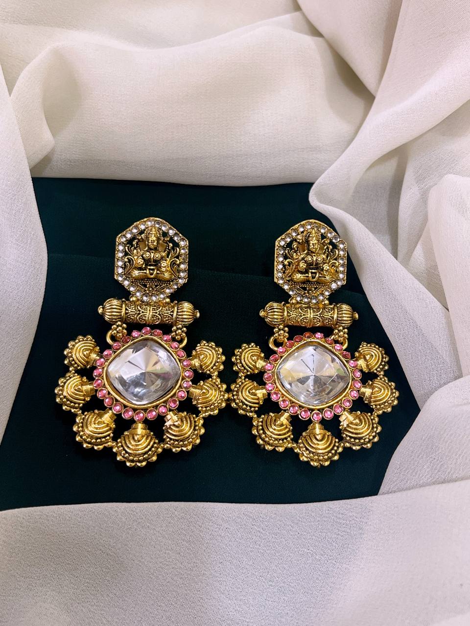 Beautiful Lakshmi in Pink Nakshi Earrings