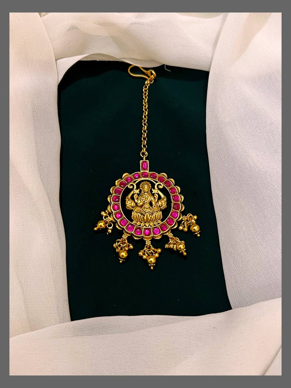 Celebrate tradition with the Lakshmi Maang Tikka - HA0050, a beautiful accessory crafted to enhance your festive and bridal looks. Designed with intricate details, it rests gracefully on the forehead, symbolizing prosperity and elegance. This piece is ideal for special occasions, adding a touch of cultural charm and sophistication to your ensemble. Its comfortable fit ensures you can wear it with confidence throughout your celebrations. Embrace timeless beauty with this supportive addition to your jewelry collecti