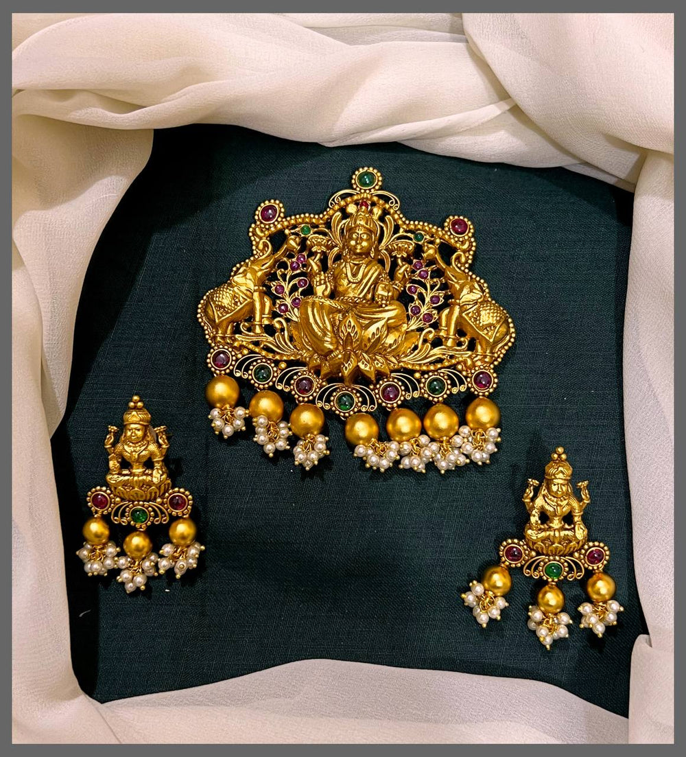 Embrace divine elegance with this exquisite Lakshmi Pendant and Earring set, crafted in traditional Kundan style. The intricate detailing captures the essence of the goddess of wealth and prosperity, making it a meaningful addition to your jewelry collection. Perfect for festive occasions, weddings, or spiritual celebrations, this set combines timeless artistry with cultural significance. Each piece showcases meticulous craftsmanship and radiant gemstone work that reflects light beautifully. Ideal for those who appreciate authentic Indian jewelry and wish to honor their heritage with grace and sophistication.