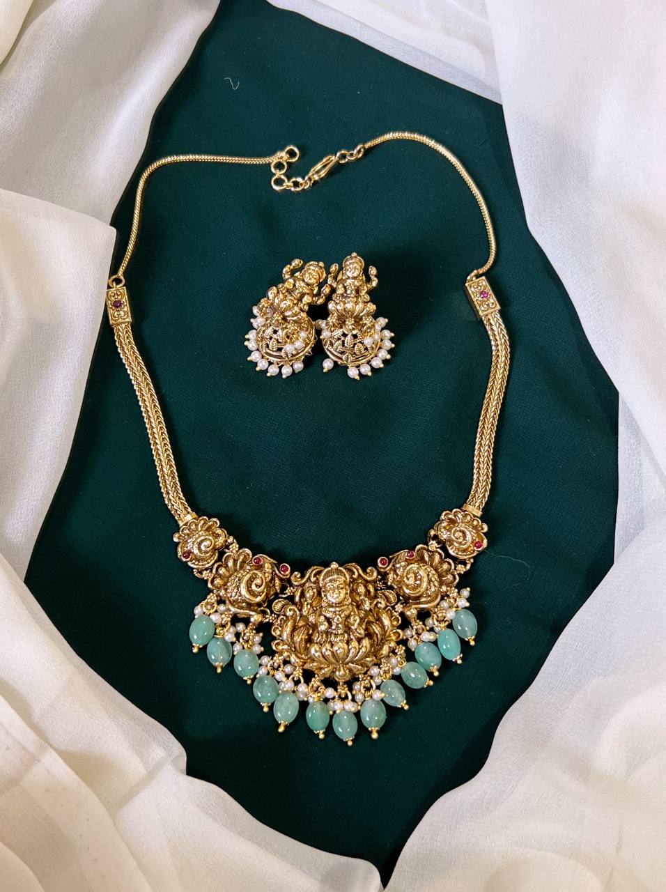 Elevate your accessory collection with this exquisite Lakshmi pendent in Nakshi Necklace with Earring adorned with intricate NAKSHI craftsmanship. This stunning piece combines elegance and tradition, making it a perfect addition to any outfit, whether for a special occasion or everyday wear.