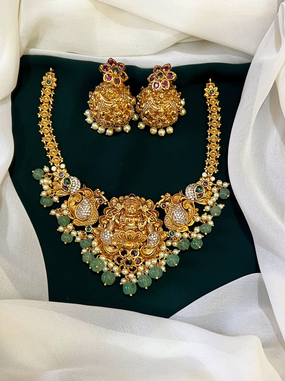 Elevate your accessory collection with this exquisite Lakshmi pendent in nakshi Necklace with Earring adorned with intricate Nakshi workmanship. This stunning piece combines elegance and tradition, making it a perfect addition to any outfit, whether for a special occasion or everyday wear.