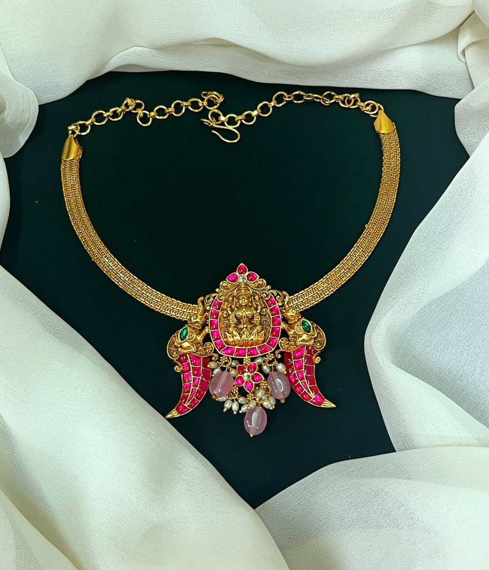 Beautiful Jadau Kundan Lakshmi Puligoru Pendant with Chain.