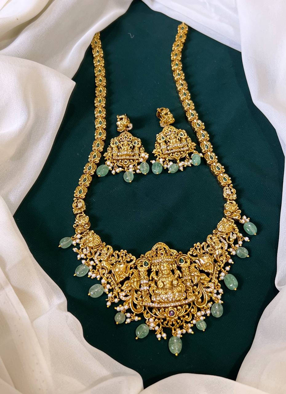 Elevate your accessory collection with this exquisite Lakshmi with Peacock in Nakshi Haram with Earring adorned with intricate NAKSHI craftsmanship. This stunning piece combines elegance and tradition, making it a perfect addition to any outfit, whether for a special occasion or everyday wear.