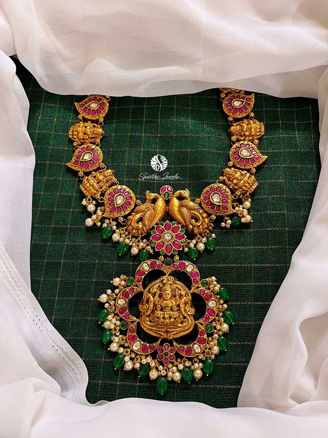 Features: Color: Golden Style: Laxmi Pendant Material: Brass, Jadau Earrings: Yes Experience: Lightweight and comfortable to wear Usage: Festive season and traditional Events