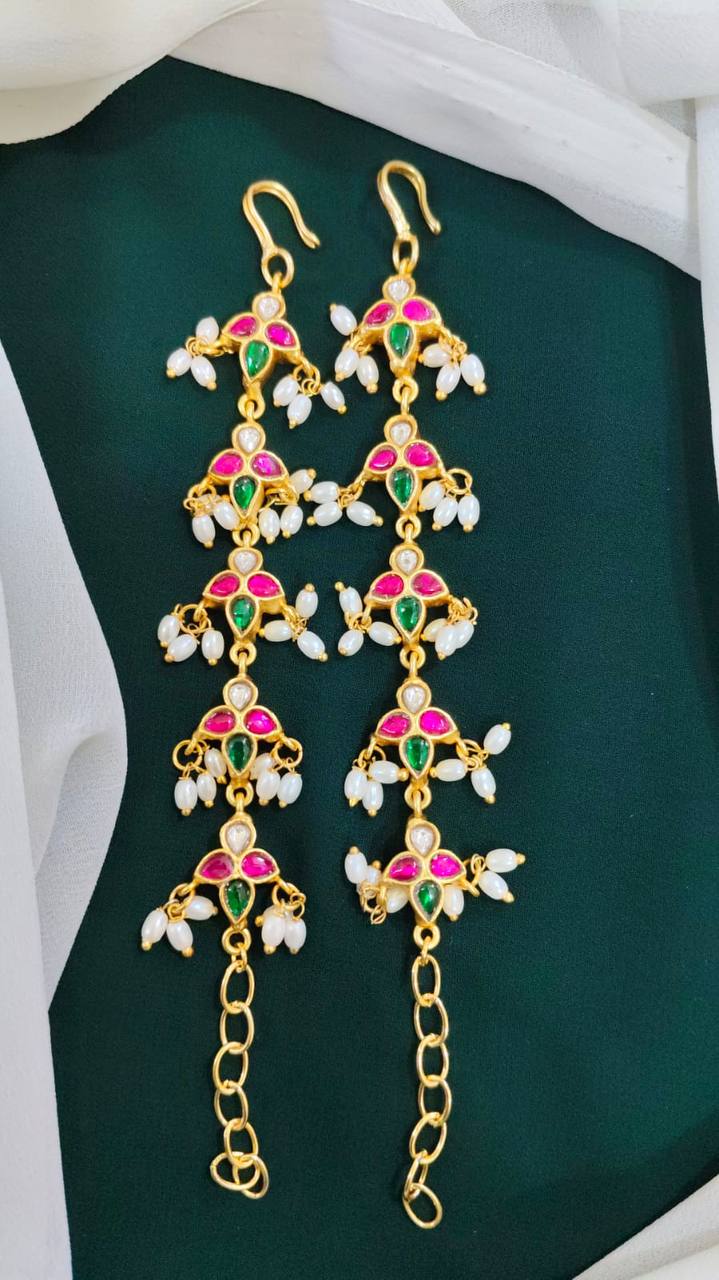 This elegant Multi Kundan Maatil - MT0032 features a unique leaf pattern design, crafted with precision and attention to detail. Made with high-quality materials, this Maatil is a perfect accessory for any occasion. Its intricate Kundan work adds a touch of sophistication and style, making it a must-have for any fashion-forward individual.