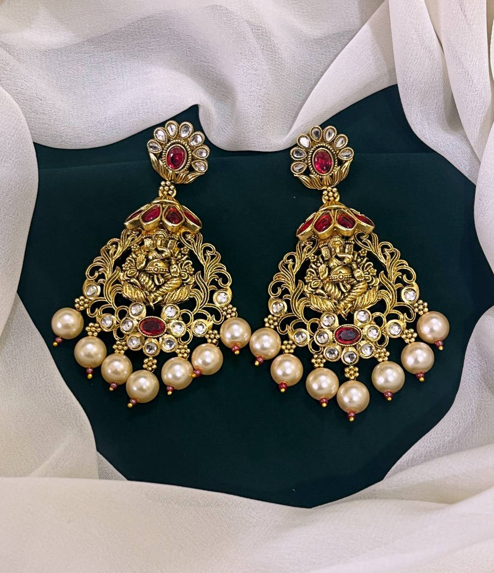 Beautiful Lord Ganesh in Kampu and Pearl Nakshi Earrings