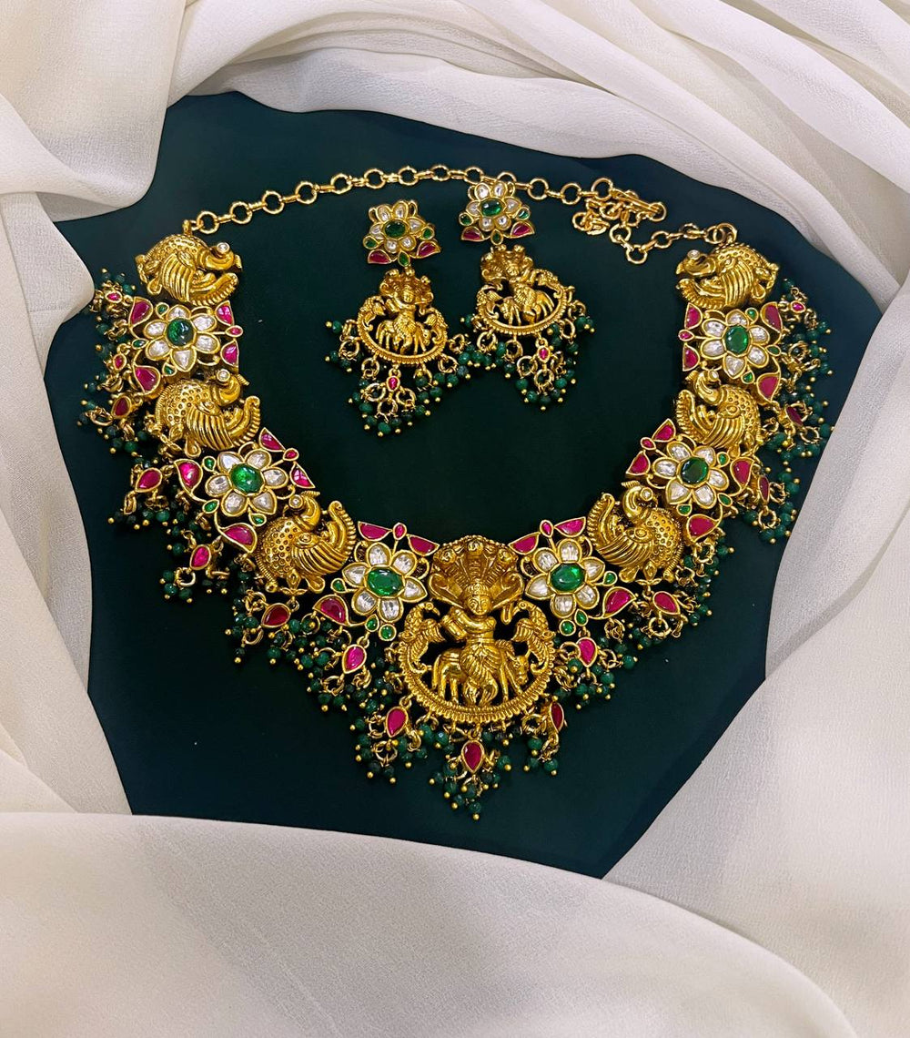 Elevate your accessory collection with this exquisite Lord Krishna with Peacock necklace in Jadav Kundan with Earring adorned with intricate JADAV KUNDAN workmanship. This stunning piece combines elegance and tradition, making it a perfect addition to any outfit, whether for a special occasion or everyday wear.